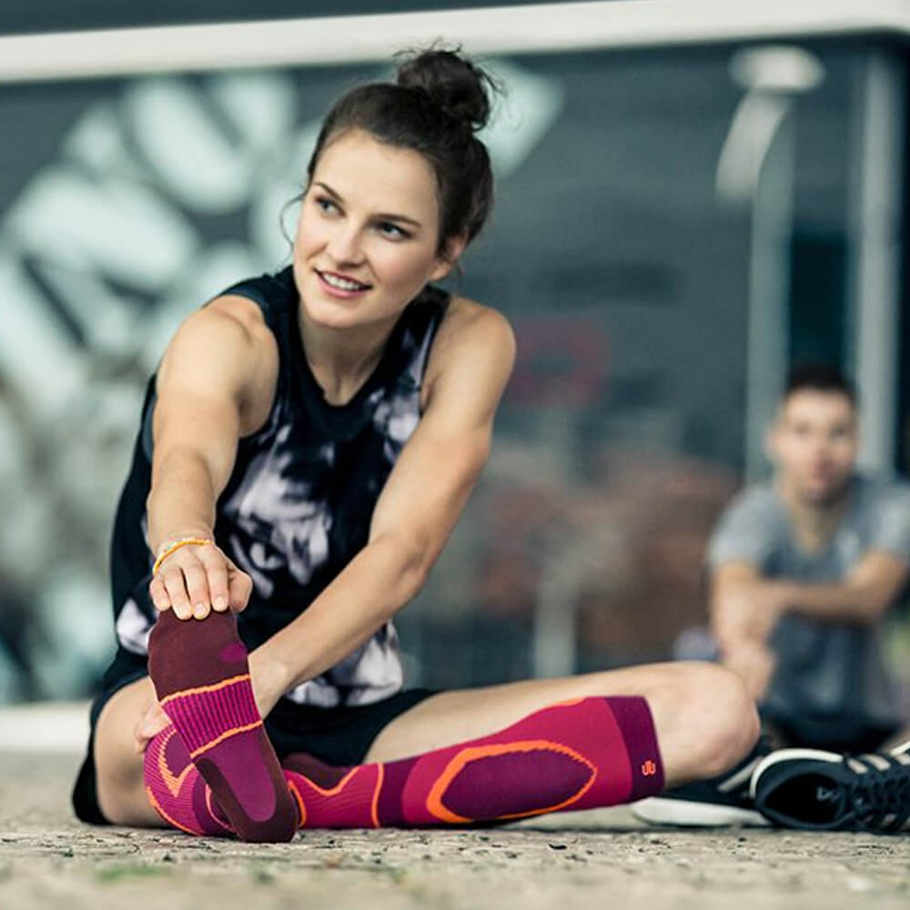 Compression socks are often worn for hours, so be sure to select the product with the right features: a perfect and no-slipping fit, breathable material as well as compression. All of our products that feature MEDICAL COMPRESSION TECHNOLOGY are made from a highly elastic knitted fabric that exerts a carefully regulated level of pressure. This compressive action boosts your circulation with lasting effect, transporting that all-important oxygen around your body. As a result, you can train more regularly, recover more quickly, get tired less easily, experience fewer muscle vibrations, and draw on greater energy reserves.