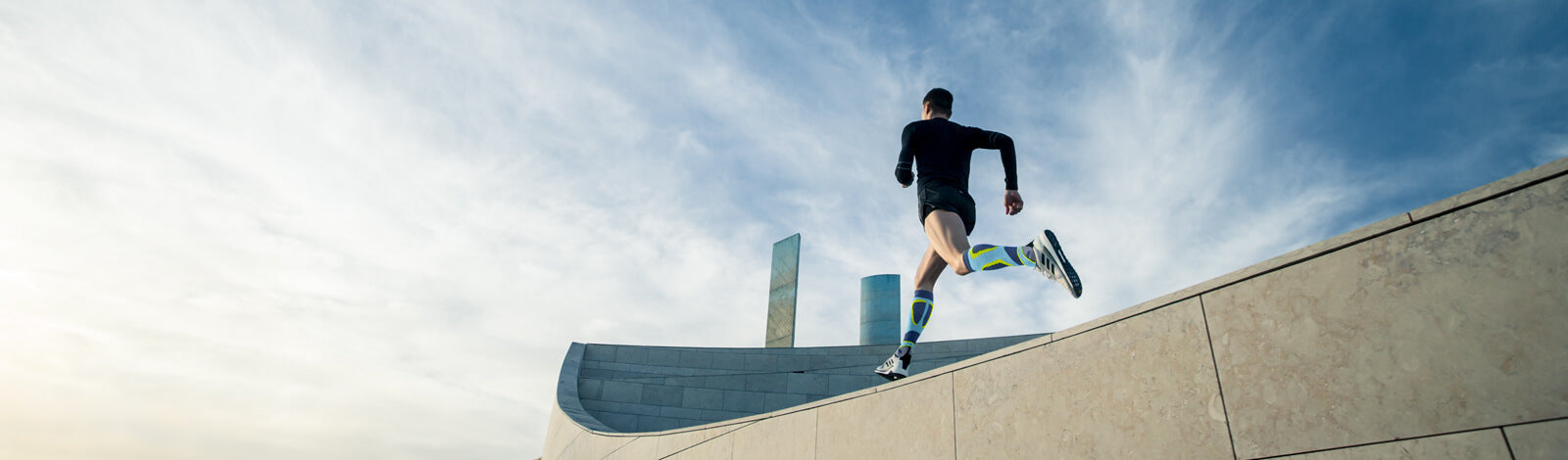 Compression socks are often worn for hours, so be sure to select the product with the right features: a perfect and no-slipping fit, breathable material as well as compression. All of our products that feature MEDICAL COMPRESSION TECHNOLOGY are made from a highly elastic knitted fabric that exerts a carefully regulated level of pressure. This compressive action boosts your circulation with lasting effect, transporting that all-important oxygen around your body. As a result, you can train more regularly, recover more quickly, get tired less easily, experience fewer muscle vibrations, and draw on greater energy reserves.